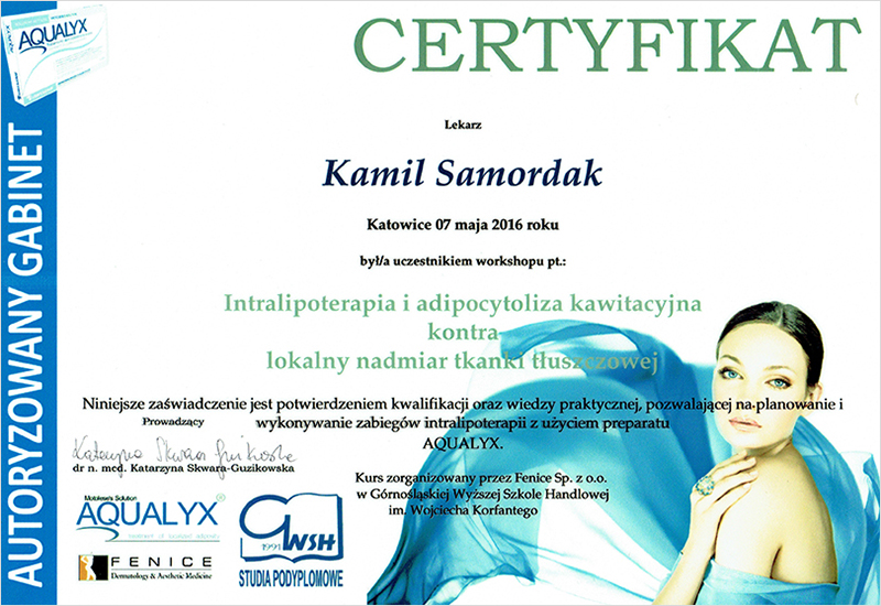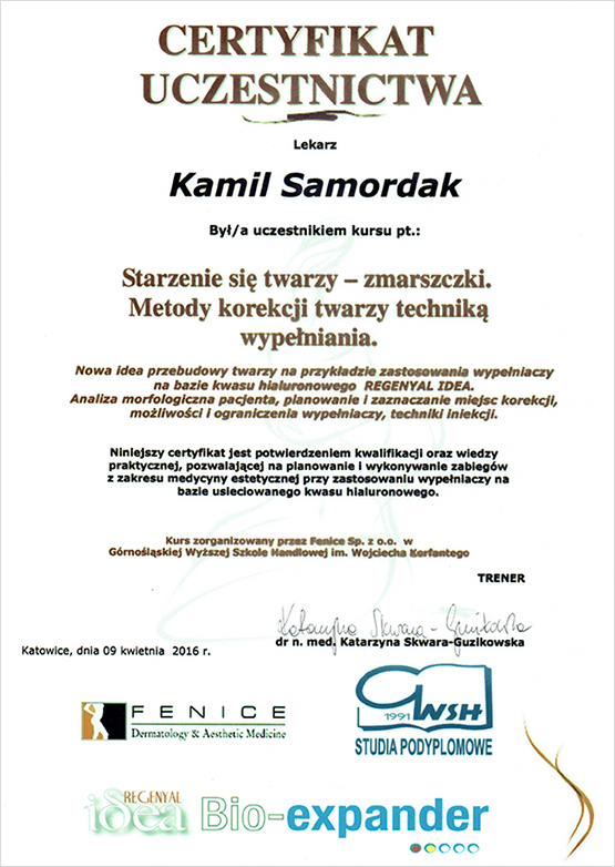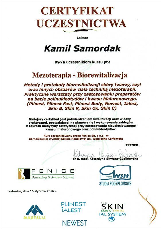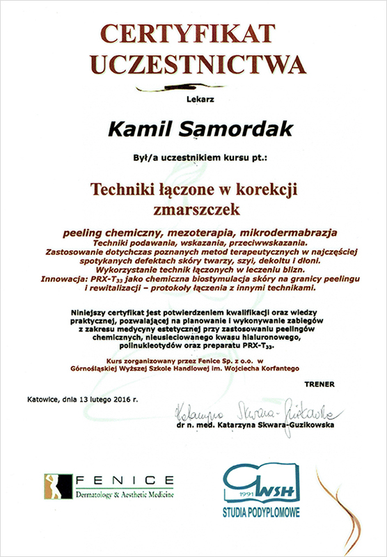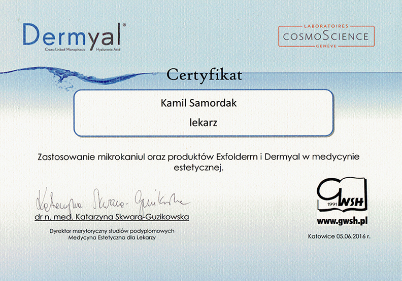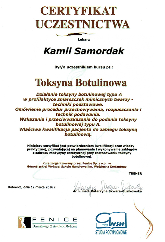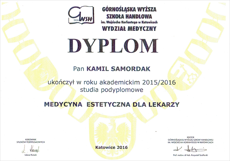 "Dyplom ukończenia uczelni - Medycyna Estetyczna Dla Lekarzy."