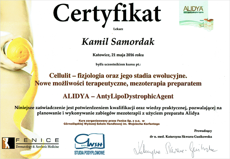 "Cellulit - fizjologia oraz jego stadia ewolucyjne. Nowe możliwości terapuetyczne, mezoterapia preparatem ALIDYA Anti Lipo Dystrophic Agents"