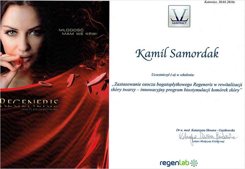 "Zastosowanie osocza bogatopłytkowego Regeneris w rewitalizacji skóry twarzy - innowacyjny program biostymulacji komórek skóry"